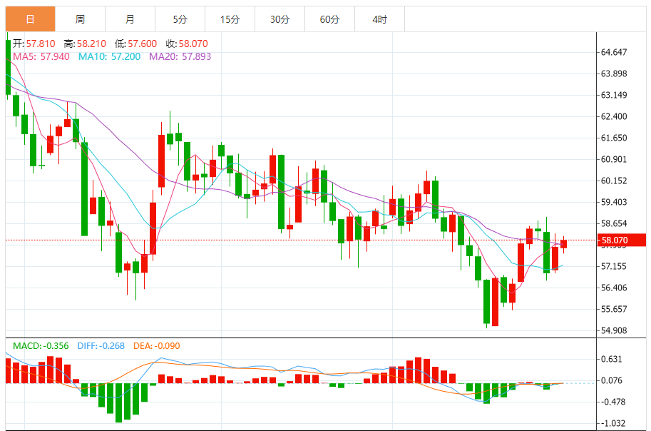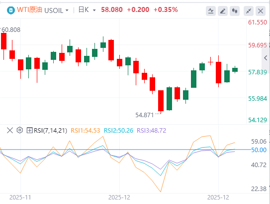 WTI价格在地缘政治风险下走高。交易员们正等待美国石油协会(API)周二发布的原油库存报告,以期获得新的动力。截至目前,WTI原油报价58.08美元,Brent原油报价61.80美元。