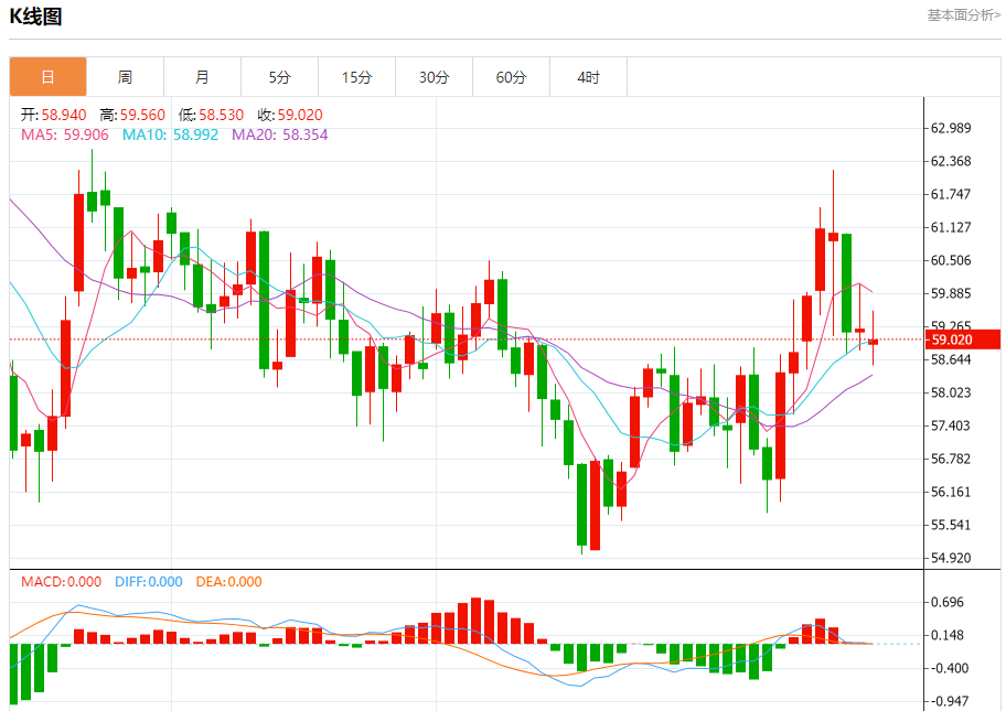 价格目前正在测试59.00-59.50美元附近的颈线支撑,跌破该水平可能会确认熊市动能的转移。