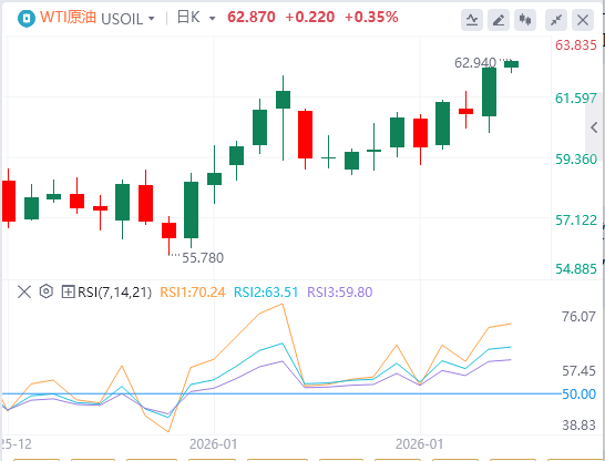 原油期货隔夜延续涨势,因市场持续对多个前沿的短期供应不确定性进行定价。近期的上涨并非仅由对伊朗潜在供应中断的担忧驱动,持续的乌克兰战争——即使和谈仍在进行也悬而未决——同样是关键因素。与此同时,美国冬季风暴导致的与天气相关的生产冻结,为短期供应预期增添了另一层收紧风险。多重因素叠加使得原油的风险平衡倾向于上行,价格直接对供应可能减少的前景作出反应,而非任何需求冲击。WTI原油期货上涨至62美元之上,布伦特原油期货也冲至66美元上方,这凸显了地缘政治和运营中断在即使温和的价格水平下,仍持续为基准油价提供支撑。