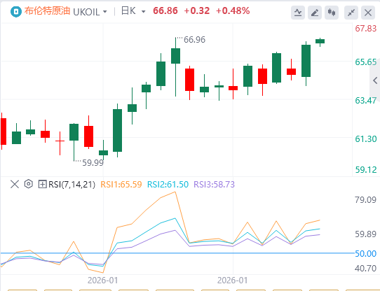 由于冬季风暴引发的美国生产损失担忧,WTI价格略微上涨。交易员们期待能源信息署(EIA)周三晚些时候发布的原油库存报告。截至目前,WTI原油报价62.87美元,Brent原油报价66.86美元。