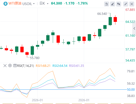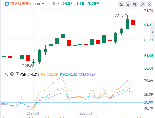国际油价飙升至数月以来的高位,布伦特原油期货升至70关口附近,一度逼近72美元,为2025年7月以来的首次。而WTI原油则抵达65美元。
