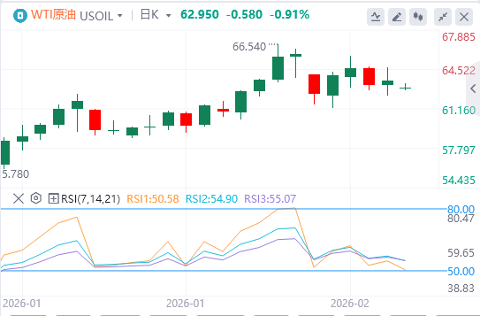 原油新一周开始时表现较弱,美伊谈判进展迹象降低了军事冲突的可能性和供应中断的风险。截至目前,WTI原油报价62.95美元,Brent原油报价67.09美元。