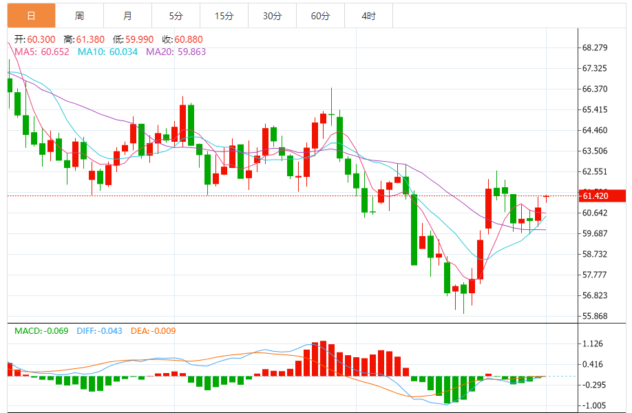 周二(11月4日),美原油价格交投于60.840美元/桶附近,跌幅为0.34%。 原油价格在最后一个交易日波动,在试图获得更多可能支持复苏尝试的看涨动力并再次上涨期间,价格仍然依赖于其A50的支撑,这加强了当前看涨交易的稳定性。 这些举措是在短期看涨修正趋势占主导地位及其沿着该轨道的支撑趋势线交易的情