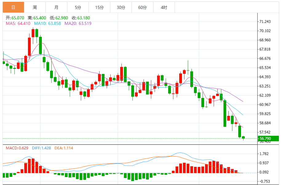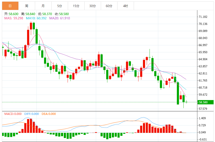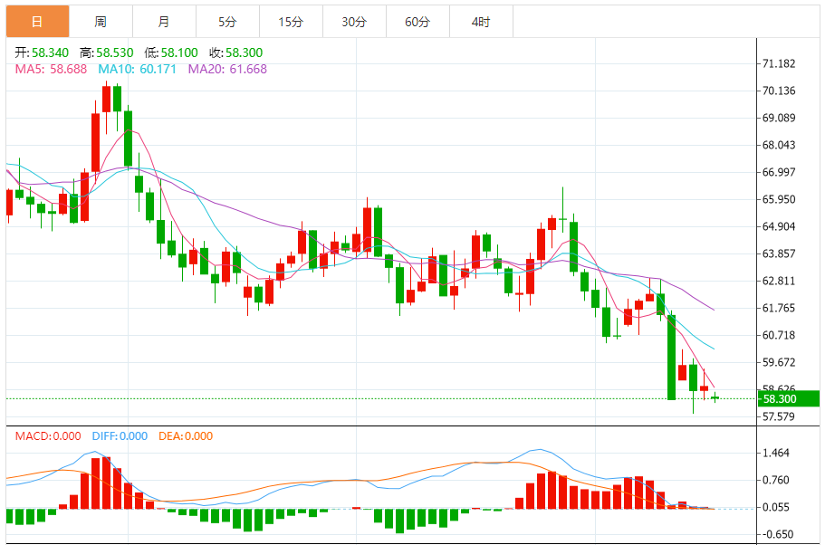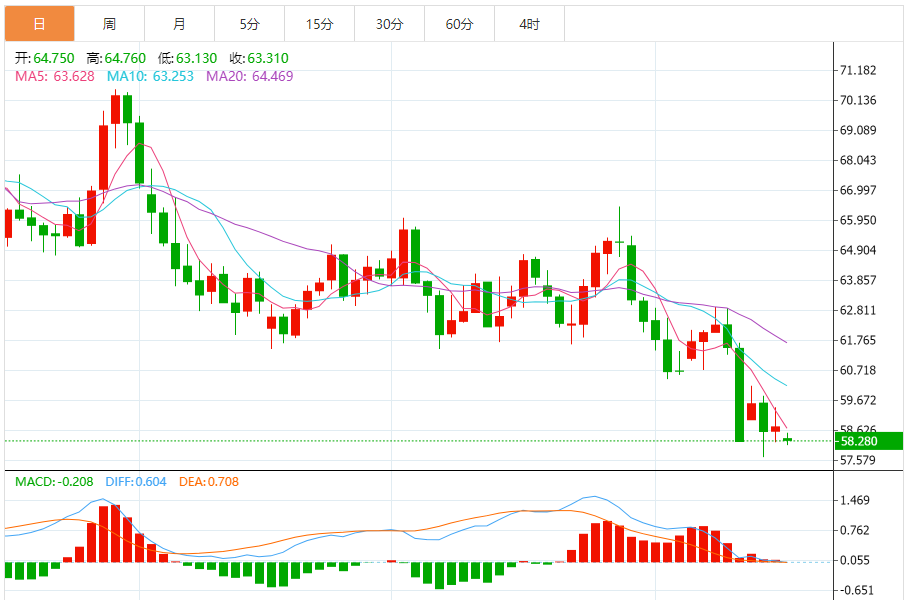 10月16日晚间原油市场面临复杂的形势,价格走势受到多种因素的综合影响。以下是对今日晚间原油行情的分析与展望: 行情回顾 截至10月16日亚盘时段,美原油价格交投于58.3美元/桶附近。而在15日,纽约商品交易所11月交货的轻质原油期货价格下跌43美分,收于每桶58.27美元,跌幅为0.73%;12月交货的伦敦布伦