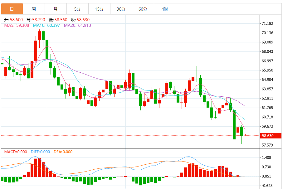 10月14日,原油周二每桶下跌近1美元,回落至58.00美元附近的水平,略高于上周触及的五个月低点57.90美元,受到中美贸易紧张局势加剧的打击。 世界两大经济体在贸易争斗中开辟了一条新战线,宣布提高货船费用,该费用将从今天开始生效。 这一消息让市场感到意外,粉碎了紧张局势缓和的希望。美国财政部长斯科特·贝森特