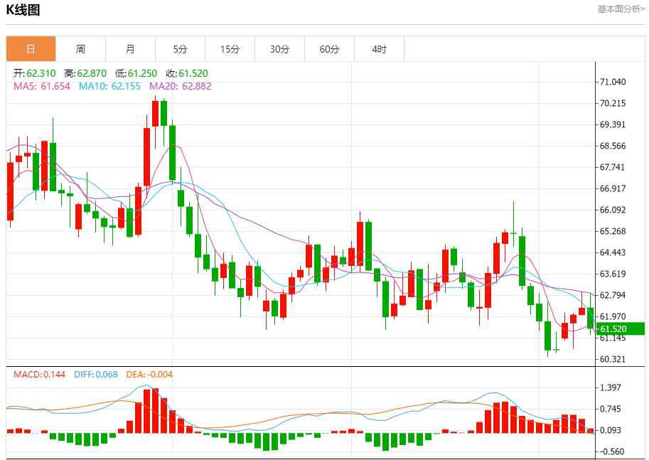 基本消息面 周三,国际油价延续前一交易日的跌势。布伦特原油期货下跌0.19%,报每桶62.27美元;美国WTI原油期货下跌0.17%,至每桶58.60美元。两项合约均创下自5个月以来的最低收盘价。 相关新闻消息 国际能源署(IA)于周二发布报告指出,全球原油市场在2026年可能出现多达每日400万桶的供应过剩,