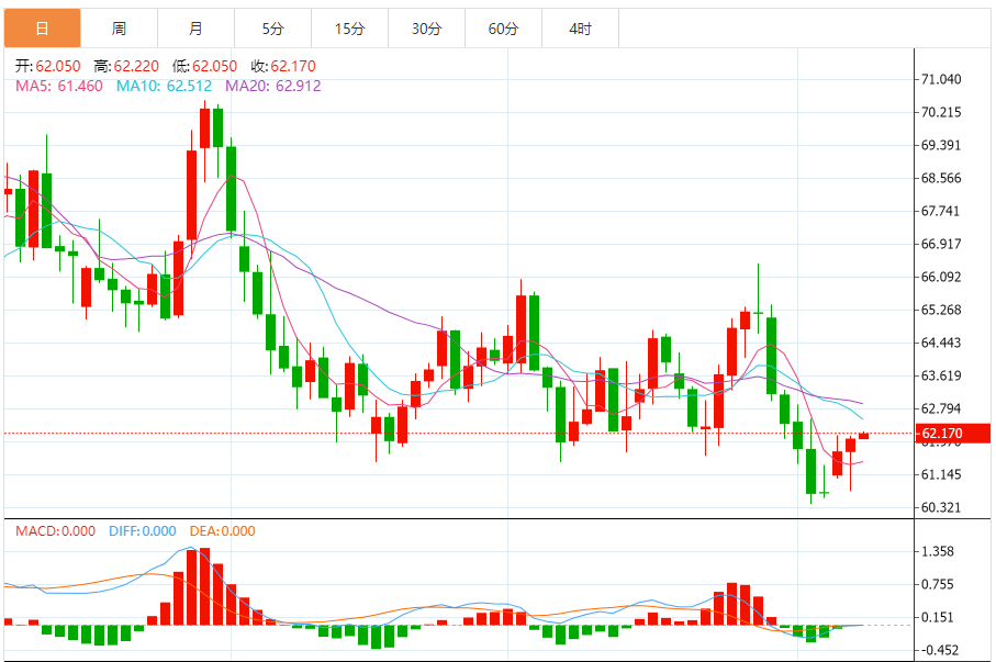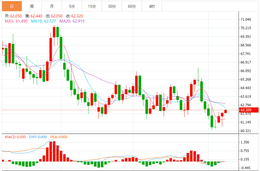 基本消息面 周二(10月7日),美原油价格交投于61.760美元/桶附近,涨幅为0.13%。此前OC+计划在11月增产的幅度比预期的要小,缓和了一些对供应增加的担忧,不过需求前景疲软可能会限制近期涨幅。 OC+周日表示,将从11月起把石油产量提高13.7万桶/日,与10月一样选择相当温和的月度增幅,因市场将出现