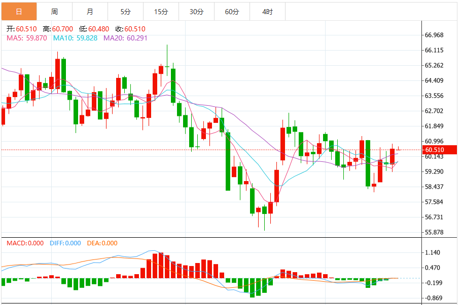 11月19日,周三亚市盘中,原油交投60.46附近。 原油(WTI)周二微幅上涨,约60.50美元,当天上涨近1.35%,尽管供应顺差持续存在担忧。 国际能源署(IA)和美国能源信息署(IA)的最新预测警告称,全球石油市场正处于供过于求的阶段,非欧佩克的产出增长和消费疲软预计将影响到2026年初的经济平衡。 与此同时,随着俄
