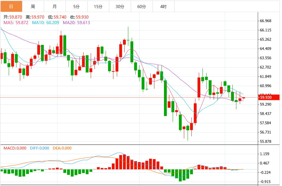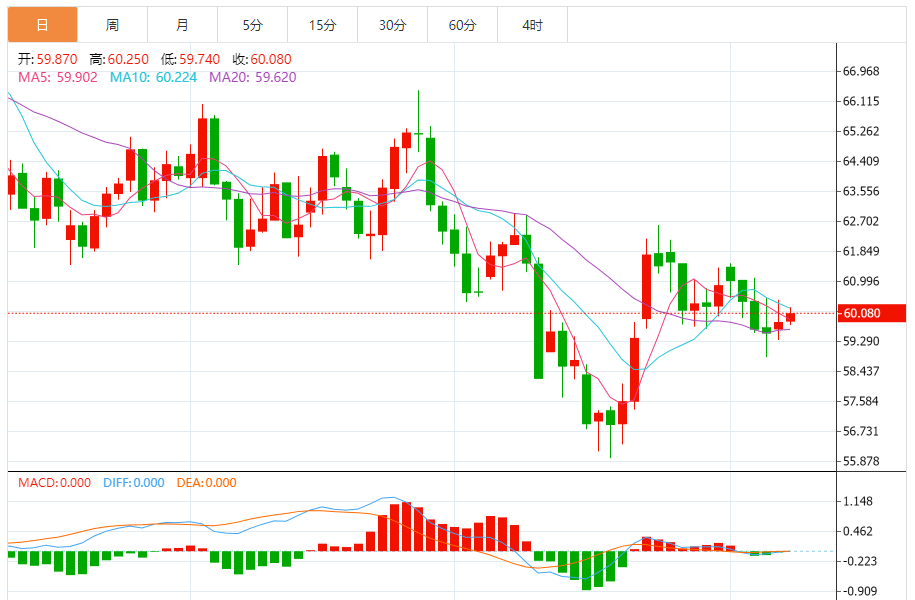 基本消息面 周五(11月7日),美国西德克萨斯中质原油(WTI)小幅回弹至于59.78美元/桶附近,此前已连续四个交易日走低。受地缘风险推动,油价收复部分失地。然而,在市场对供应过剩的担忧日益加剧之际,油价潜在上行空间可能受限。美原油连续上涨约0.6%至59.78美元/桶;布伦特原油连续上涨约0.4%至63.70美元/桶