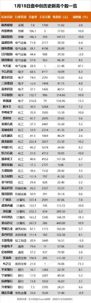 1月18日,沪指收报3596.22点,涨0.84%。东方财富Choic数据显示,今日有47只个股盘中股价创历史新高。其中,个股包括平安银行、韦尔股份等。