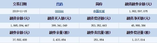 中国长城(000066)2019-11-15融资融券信息显示,中国长城融资余额1865094467元,融券余额37502608元,融资买入额399341049元,融资偿还额353352663元,融资净买额45988386元,融券余量2433654股,融券卖出量251854股,融券偿还量1217014股,融资融券余额1902597075元。中国长城融资融券详细信息如下表: