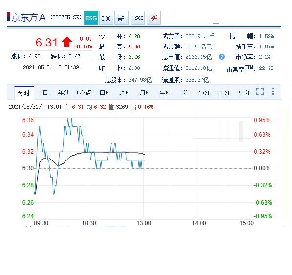 京东方A股票 浩宇 2021-06-25 13:11 215