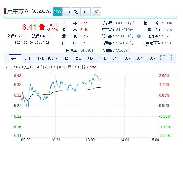 京东方A股票 浩宇 2021-03-30 16:36 154