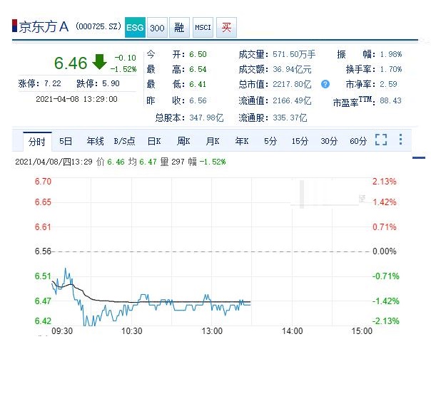 京东方A股票 浩宇 2021-04-13 11:26 142