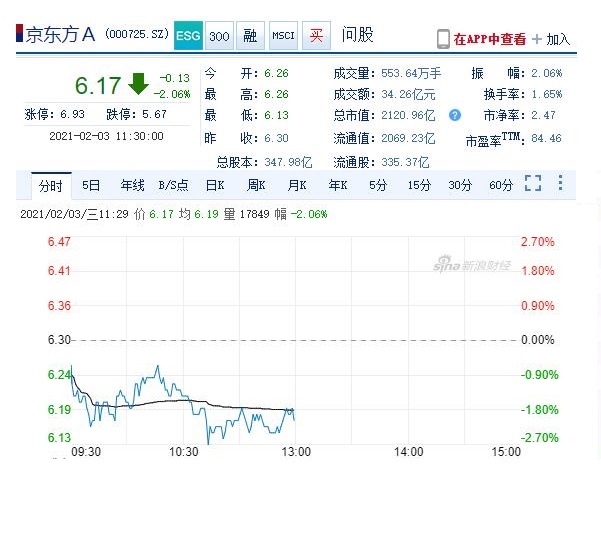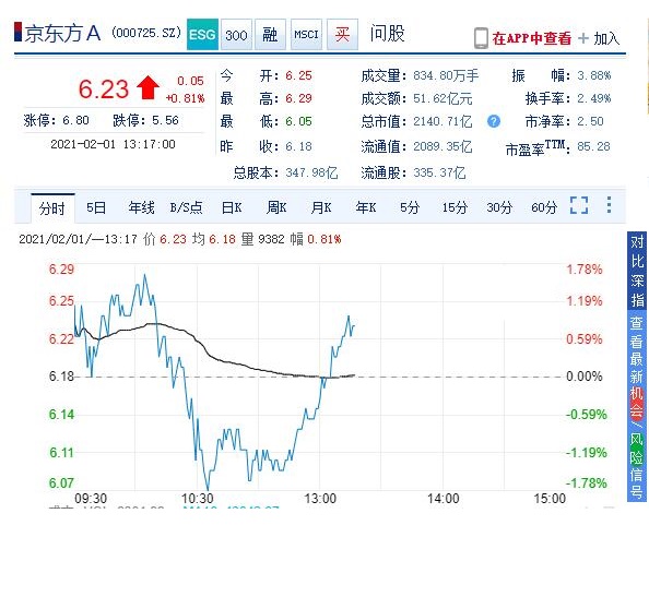 京东方A股票 浩宇 2021-02-02 18:05 182