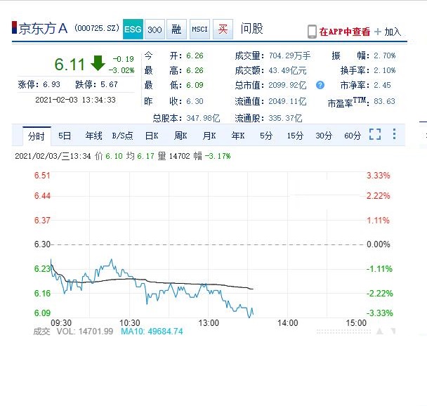 京东方A股票 浩宇 2021-02-02 10:20 204