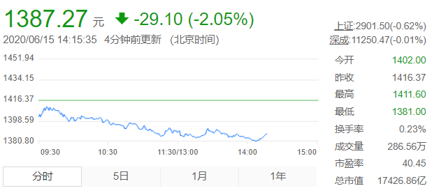 贵州茅台股票 楠楠 2020-06-15 14:19 599
