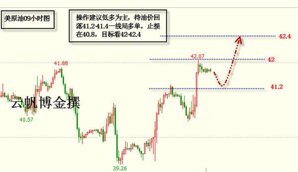 美原油09#:建议待油价回落41.20-41.40布局多单,止损在40.80,目标看42.00-42.40
