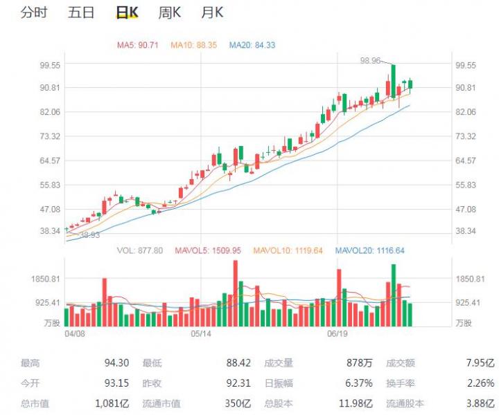今日,拼多多股票开盘93.15美元,昨日收盘92.31美元,前几日最高达98.96美元。