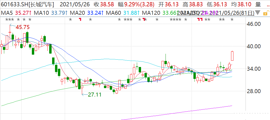 长城汽车A股一度触及涨停报38.83元,H股一度涨近10%报22.7港元。公司昨晚发布2021年股票期权激励/限制性股票激励计划(草案),拟授予激励对象A股普通股股票期权39710.1万份,占总股本4.32%,授予对象8784名;授予限制性股票4318.4万股,占总股本0.47%,授予对象586名。其中两者首次授予占比均为80%,预留20%。2021-2023年销量考核目标149/190/280万辆,权重55%;净利润考核目标68/82/115亿元,权重45%。