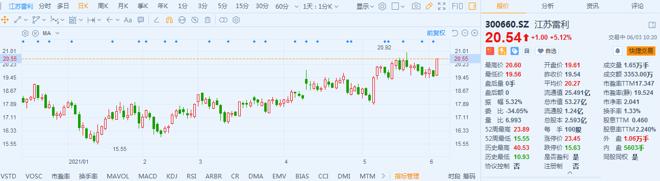 江苏雷利(300660.SZ)持续拉升,现报20.54港元,涨幅5.12%,最新总市值53.27亿。