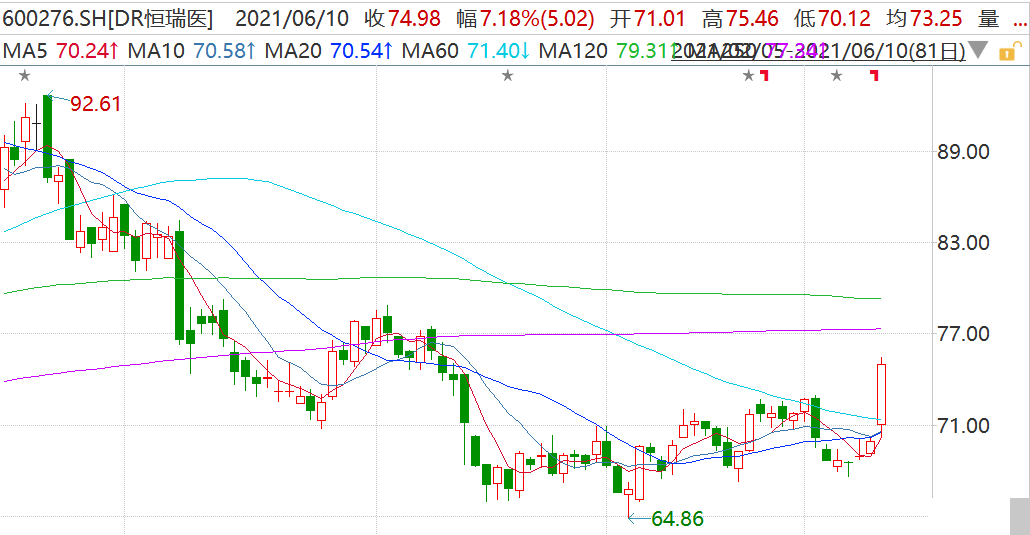 恒瑞医药今日除权,盘中大涨近8%。受其提振,创新药个股普遍活跃,复星医药、康龙化成、美迪西、凯莱英、丽珠集团等齐涨。恒瑞医药2020年年报分红:10送2派2元,今日为派息日,红股明日上市。