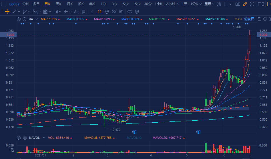 非凡中国(8032.HK)盘中涨幅一度扩大至17%,4日累计飙升超50%。高见1.26港元创6年新高价,总市值达120亿港元。
