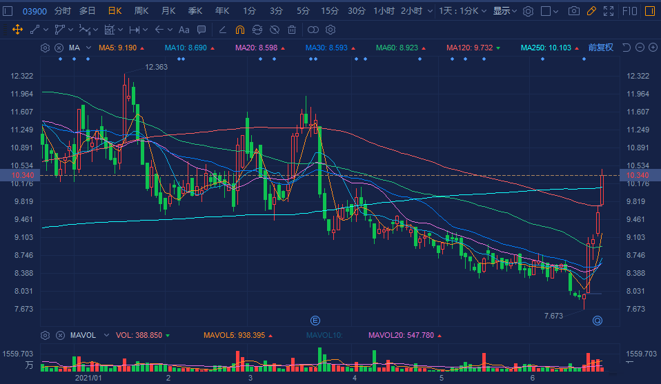 绿城管理控股(9979.HK)延续强势上扬行情,续升超8%,5日连涨30%,报10.34港元,总市值258亿港元。