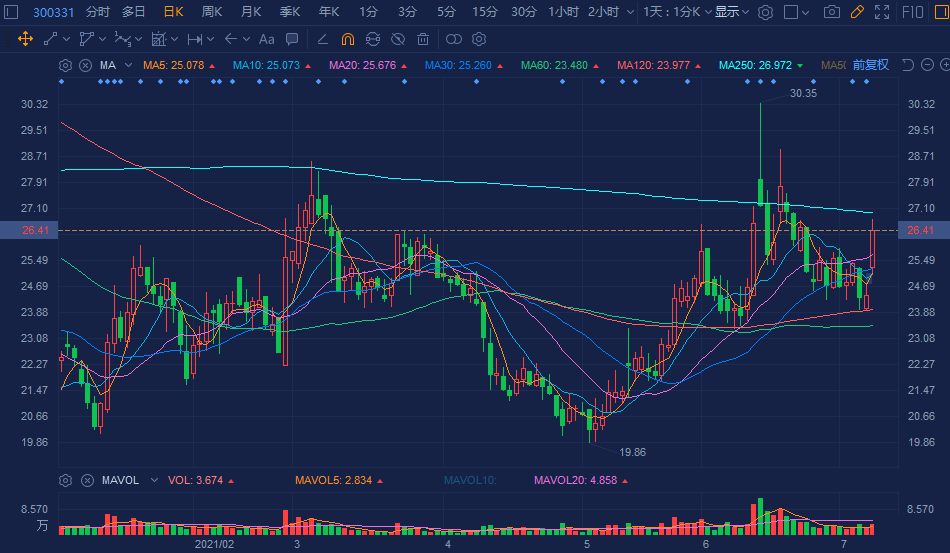 苏大维格(300331.SZ)涨8.15%,现报26.41元,暂成交9650万元,总市值60亿元。