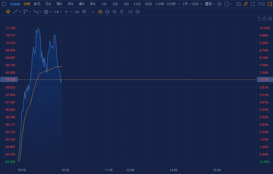 心动公司(2400.HK)盘中一度急涨超10%,现报68.45港元,成交额近3亿港元,总市值达328亿港元。