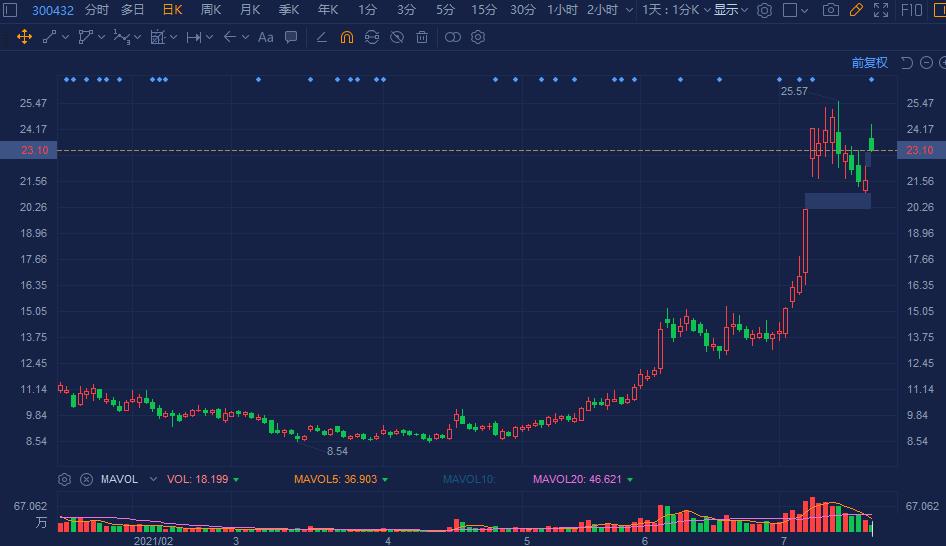 富临精工(300432.SZ)大幅高开,盘初一度冲高超12%,现报23.1元,总市值170亿元。
