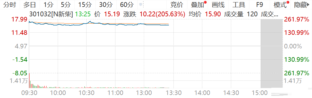 新柴股份(301032.SZ)今日首日上市,这是继巨星科技和杭叉集团后,巨星集团控股的又一家制造业企业成功登陆资本市场。新柴股份盘中一度大涨超261.97%报17.99元,目前涨205%报15.2元,成交4.39亿元,换手率48%,市值37亿元。该股发行价格4.97元/股,发行市盈率为14.77倍。