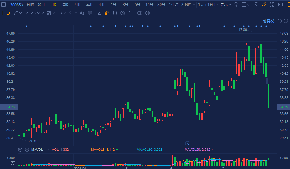 申昊科技(300853.SZ)跌幅扩大至超13%,报34.7元,成交额放大至1.56亿元,总市值51亿元。