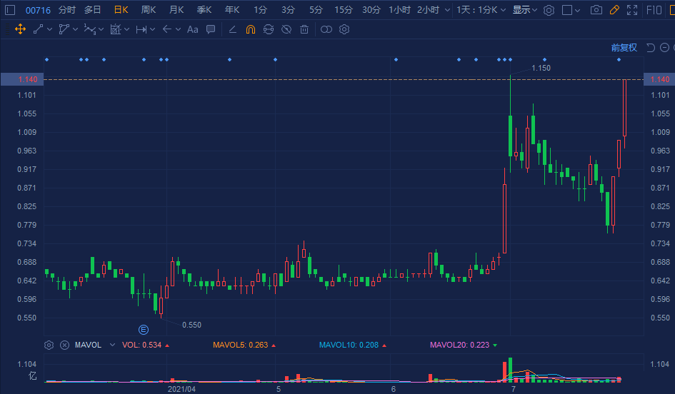 胜狮货柜(0716.HK)再度拉升涨超15%,3日累计飙涨45%。报1.14港元有望再创年内高价,成交额为5660万港元,总市值28亿港元。
