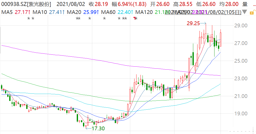 紫光股份(000938.SZ)今日明显走强,盘中一度涨超8%报28.55元,市值一度达816亿元。