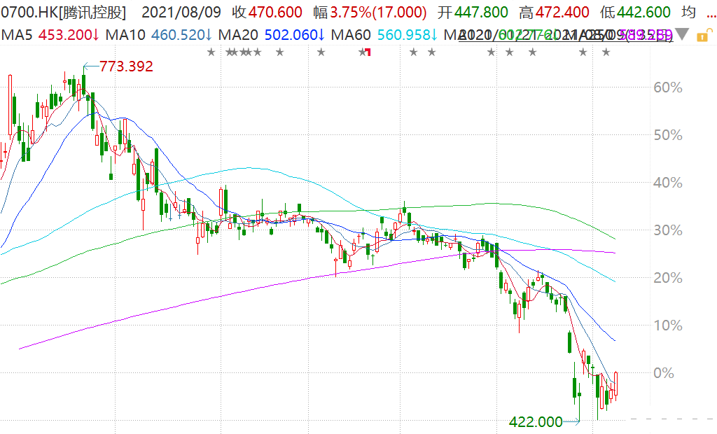 有分析人士称,腾讯在互联网被反垄断、官媒批游戏“毒害”未成年人等影响下股价一度自高位回调超40%后,目前股价有逐步盘稳迹象。加上北水持续净沽出的情况近两个交易日出现改善,上周五腾讯获北水净买入51.18亿港元,显示资金开始有抄底迹象。另外,商界大佬段永平日前在社交论坛也透露加仓腾讯。高盛最新报告认为腾讯虽然目前仍面临监管不明朗的风险因素,但股价已调整过度,重申买入评级,将其纳入确信买入名单。