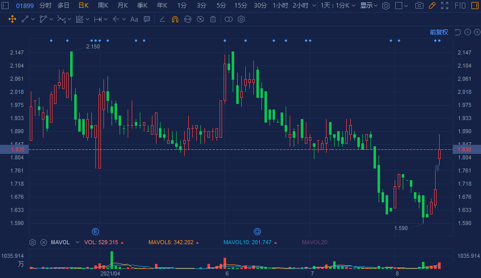 兴达国际(1899.HK)再度拉升涨8%,3日连升达15%近乎收复近期跌幅,现报1.83港元,总市值超30亿港元。