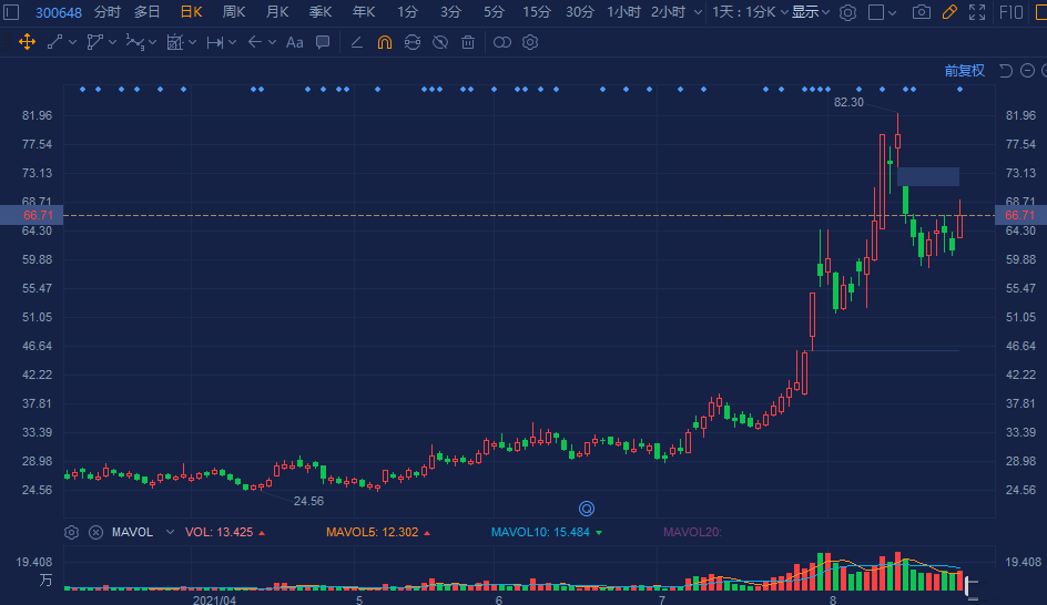 星云股份(300648.SZ)大幅拉升涨9%,报66.6元,暂成交8.8亿元已超昨日全天成交额,总市值近100亿元。