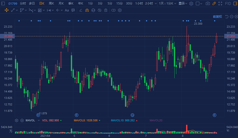 新特能源(1799.HK)续升超6%,6日累计涨幅高达35%且走出V型反转行情,现报21.95港元,暂成交1.96亿港元,总市值达278亿港元。新特能源中期股东应占溢利大增705.65倍至12.28亿元。集团实现多晶硅销量约3.54万吨,较上年同期增长约36%。