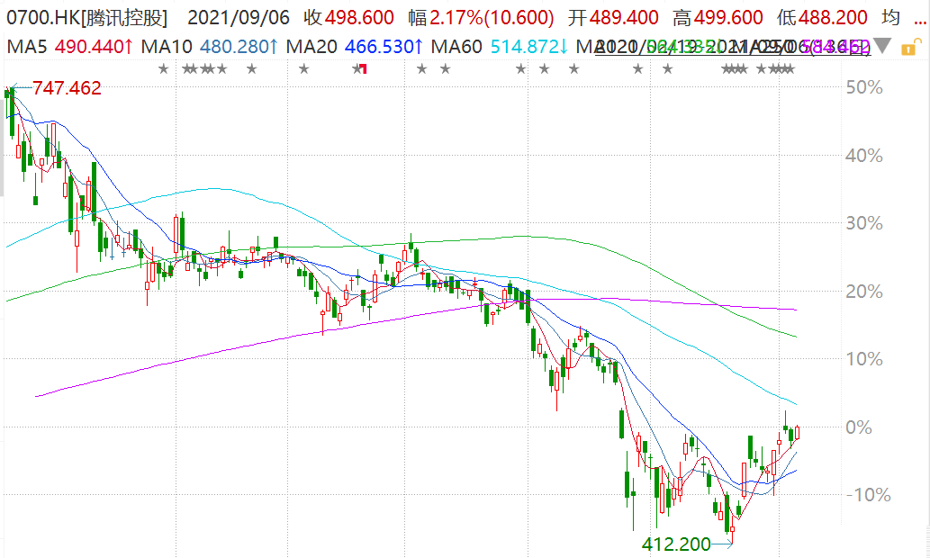 腾讯(0700.HK)盘初拉升一度涨2.38%至499.6港元,市值4.79万亿港元。