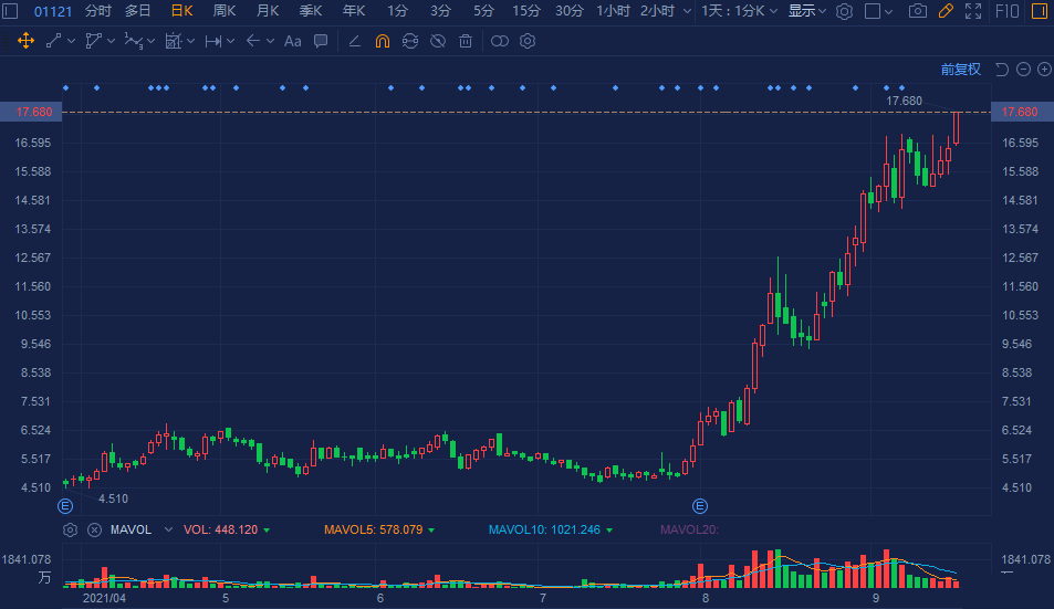 金阳新能源(1121.HK)延续强势行情,续升近8%,报17.68港元再度刷新历史新高价,自8月以来股价更是暴涨3倍,总市值超290亿港元。金阳新能源日前签订100万片单铸硅片销售合同,含增值税单价3.62元人民币/片,远比最近市价5.01元人民币/片为低,彰显了集团单铸硅片的成本优势。