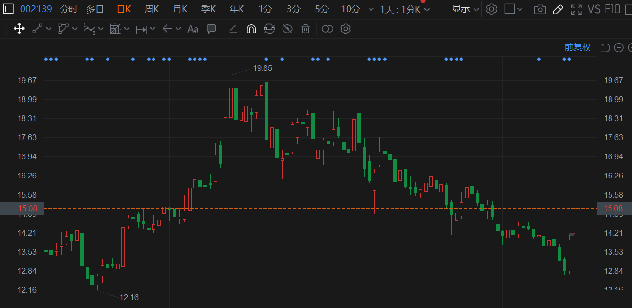 拓邦股份(002139.SZ)续升8%,两日累计大涨17%。现报15.1元,成交额放大至4.7亿元,总市值187亿元。
