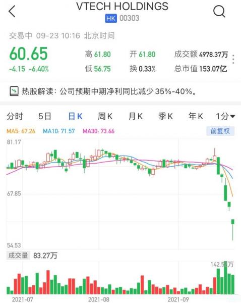 伟易达(0303.HK)今日续跌,暂五日连跌累跌逾21%,现报60.65港元,跌6.4%,暂成交4978万港元,最新市值153亿港元。