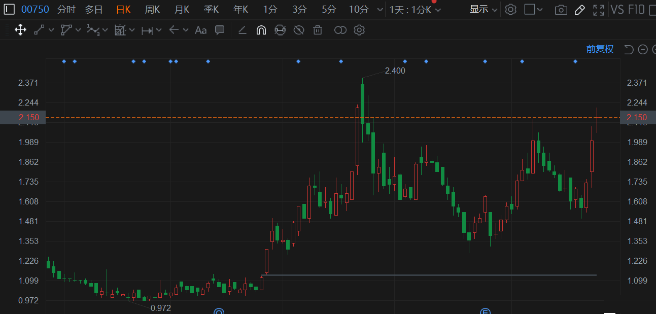 水发兴业能源(0750.HK)续升7.5%,连续3日涨幅近40%。现报2.15港元,总市值54亿港元。