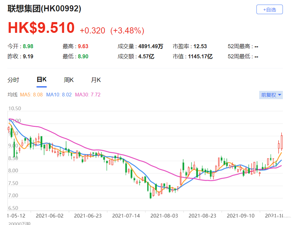 瑞银发研报指,尽管联想上市的申请仍在审核中,且受制于当地的监管部门,但依然认为联想发行中国存托凭证(CDR)的过程将成为其股价近期的正面催化。该行认为,联想目前估值吸引,予其“买入”评级,目标价11港元。该行重申联想会受惠于可持续的商业电脑业务的看法,预料商业电脑将占集团总出货量的58%,水平跑赢其他同业。该股9.51港元,涨3.48%,最新市值1145亿港元。