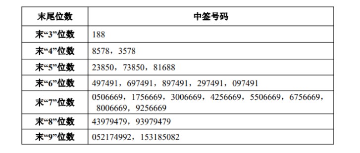 凡参与网上发行申购北元集团A股股票的投资者持有的申购配号尾数与上述号码相同的,则为中签号码。中签号码共有325001个,每个中签号码只能认购1000股北元集团A股股票。