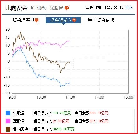 截至午间收盘: 北向资金净流出0.83亿元,其中沪股通资金净流出13.73亿元,深股通资金净流入12.9亿元。