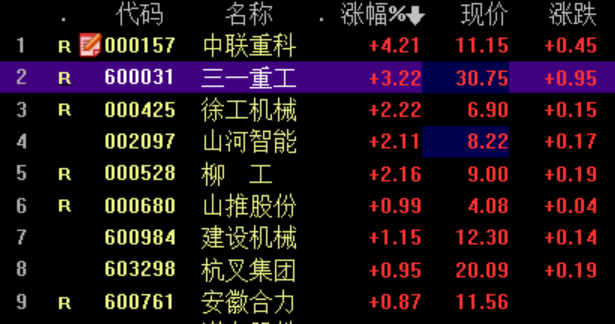 工程机械板块普涨,中联重科涨4.21%,三一重工涨3.22%,徐工机械、山河智能和柳工涨逾2%。近期由于钢材价格再次急剧飙升,中联重科站类机械、建筑起重机,徐工机械建筑起重机、临工装载机先后发出涨价通知。从供应商到主机厂,年初至今行业已经历两轮“涨价潮”。统计显示,A股工程机械板块今年一季度实现净利润翻倍的有10只。从一致预测来看,机构预测浙江鼎力、山河智能、徐工机械、建设机械今年净利润增幅超40%。中信建投指出,2021年4月工程机械行业增速趋缓,但不存在大幅波动风险。国内工程机械龙头转型升级,竞争力显著增强。据全球工程机械50强峰会组委会2021年最新发布榜单,徐工、三一、中联在全球工程机械企业中已分别位列三、四、五名。国产工程机械产品质量已与国外巨头无异,性比价和服务优势明显。