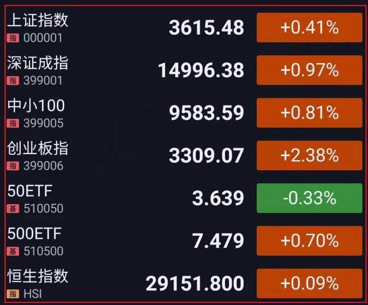 1.A股三大指数开盘涨跌不一,开盘后指数走势分化,沪指在3600点下绿盘整理,创指在宁德时代(434.100 24.50 5.98%)等权重标的的带动下表现强势,拉升至涨逾2%后冲高回落。板块方面,汽车整车股领跌两市,锂电概念持续走强,新冠检测概念股早盘走强。午后三大指数略有回暖,沪指围绕平盘线上下波动,创指再度涨超2%,随后高位盘整。板块方面,碳中和概念持续活跃,临近尾盘,婴童、养老概念板块在利好消息刺激下大幅拉升。截至收盘,上证指数涨0.41%,报3615.48点,深证成指涨0.97%,报14996.38点,创业板指涨2.38%,报3309.07点;