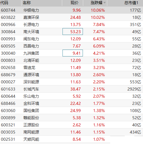 碳中和板块午后异动拉升,华银电力涨停,长源电力大涨近8%,深圳能源、雪迪龙、闽东电力等人气股跟涨。